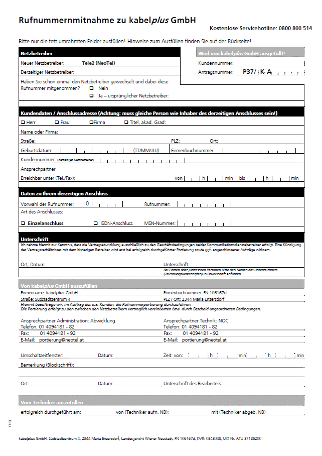 Rufnummernmitnahme Kabelplus