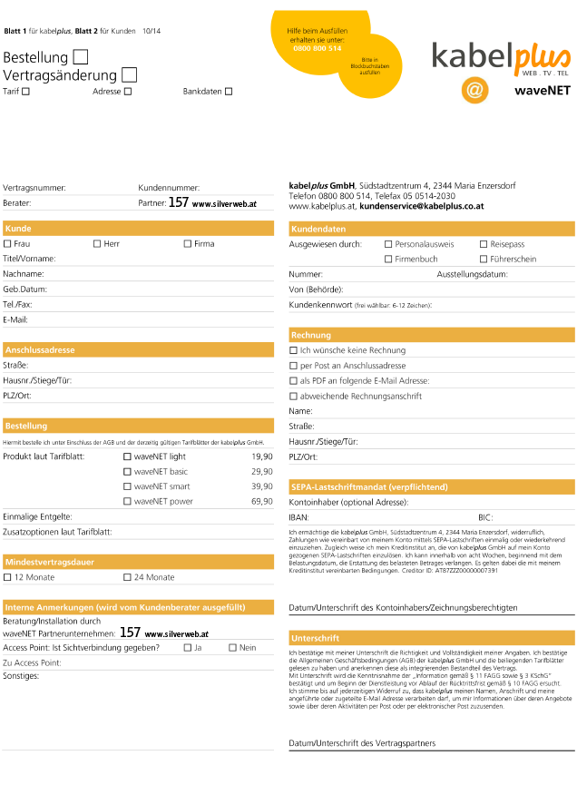 Tarifblatt Kabelplus